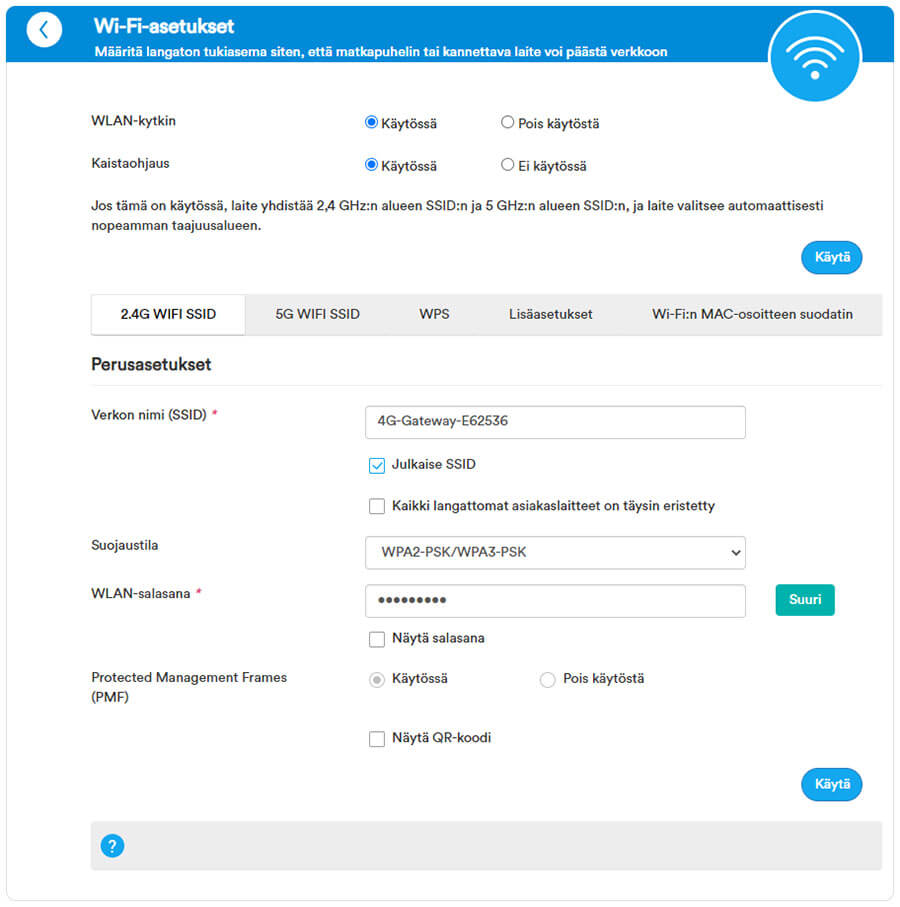 - Enter the Wi-Fi Password in the WLAN-salasana field.