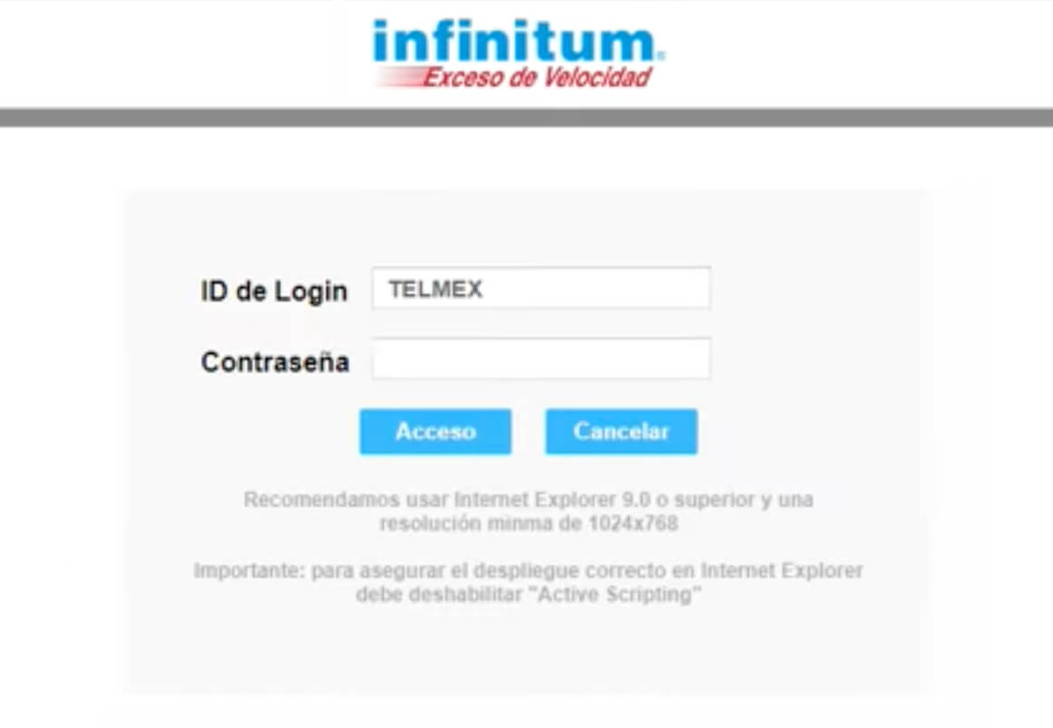 - You will be logged in to the Telmex Infinitum settings.
