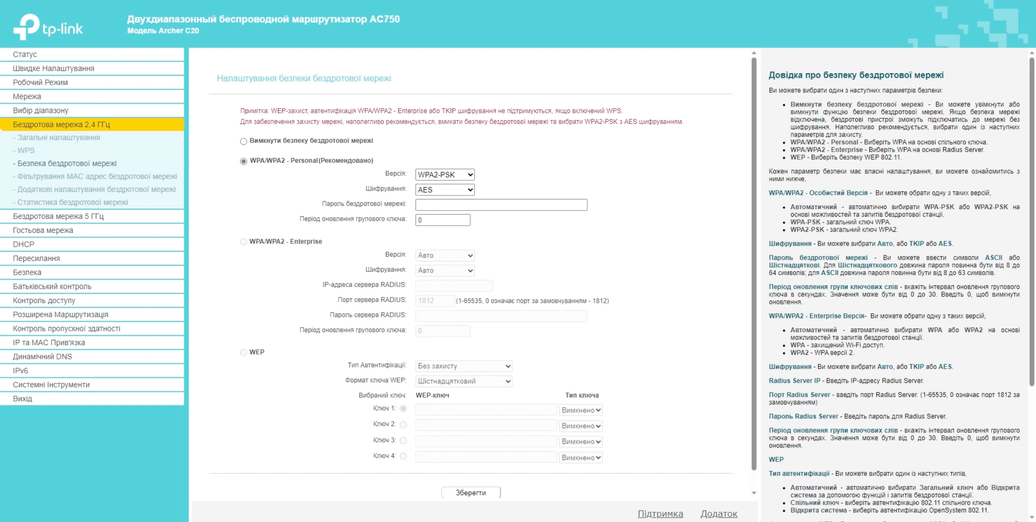 - Enter the Wi-Fi Password in the Пароль бездротової мережі field and click Зберегти.