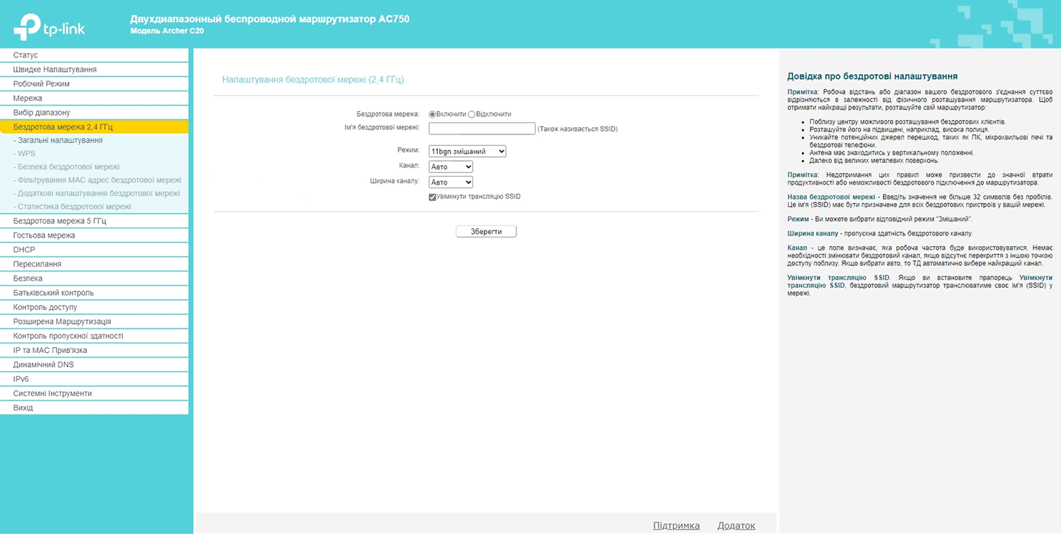 - Enter the Wi-Fi Network Name in the Ім’я бездротової мережі field and click Зберегти.