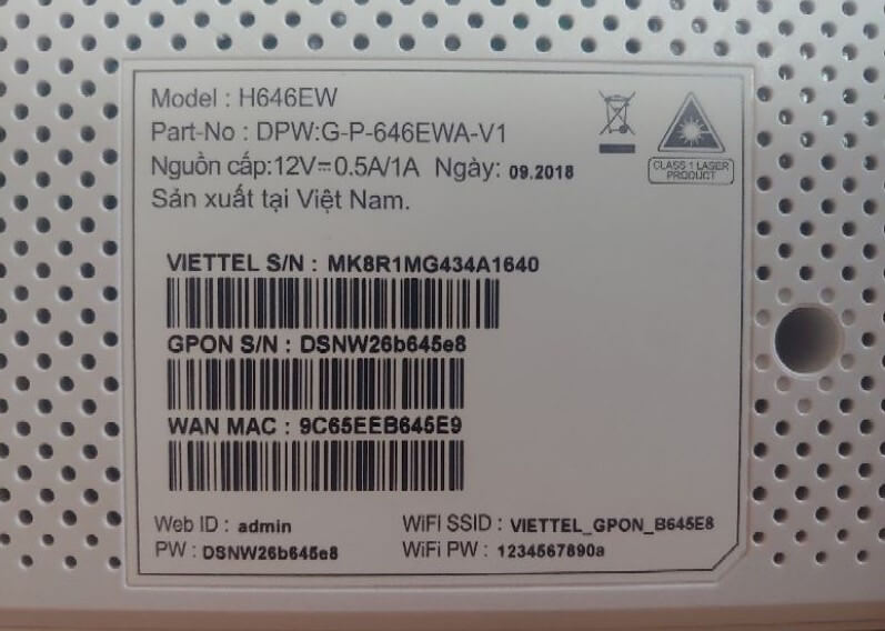 Note: The WEB User ID and Password is printed on a label on the back of the Viettel modem.