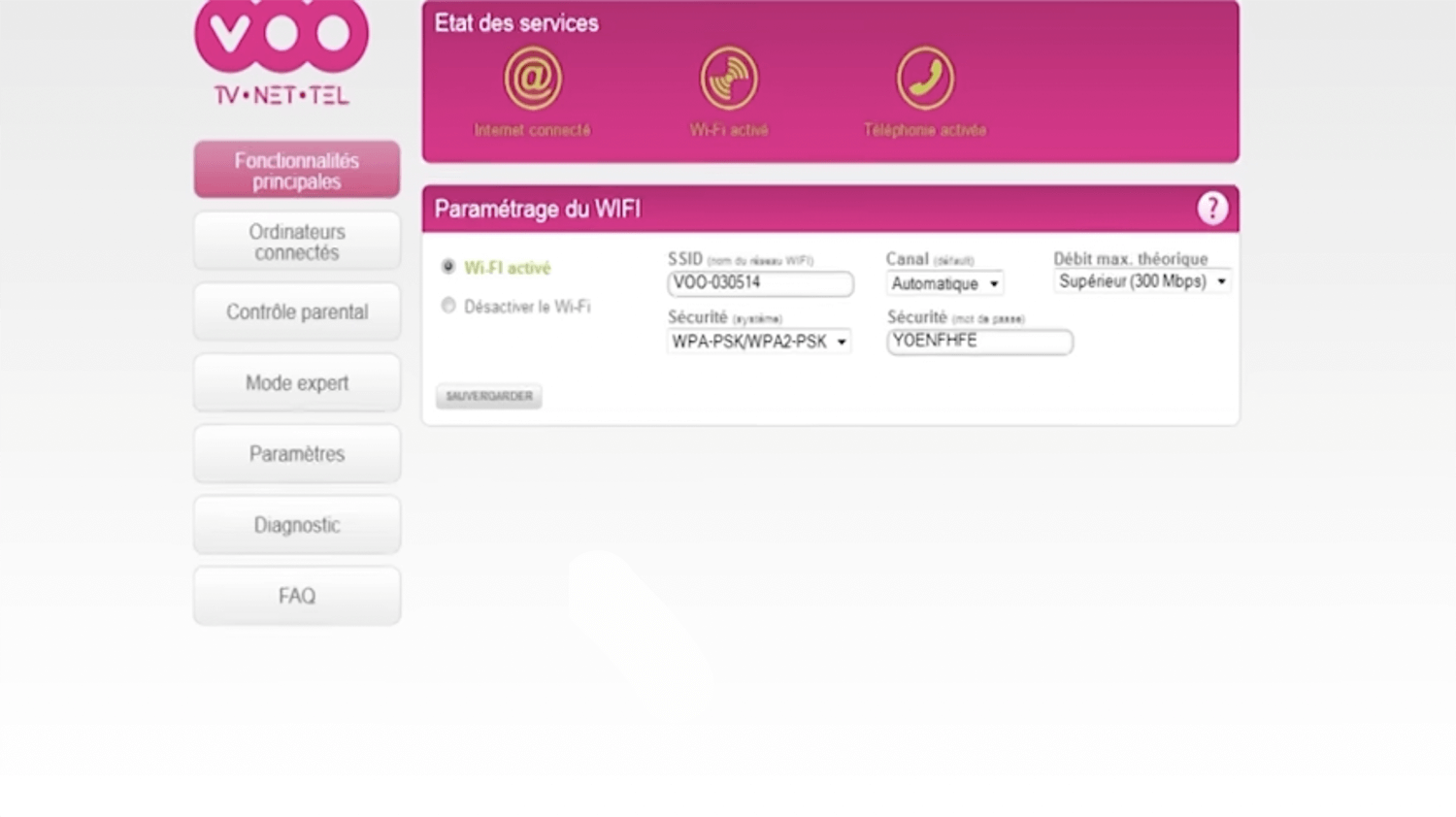 - You will be logged in to the VOO modem settings.