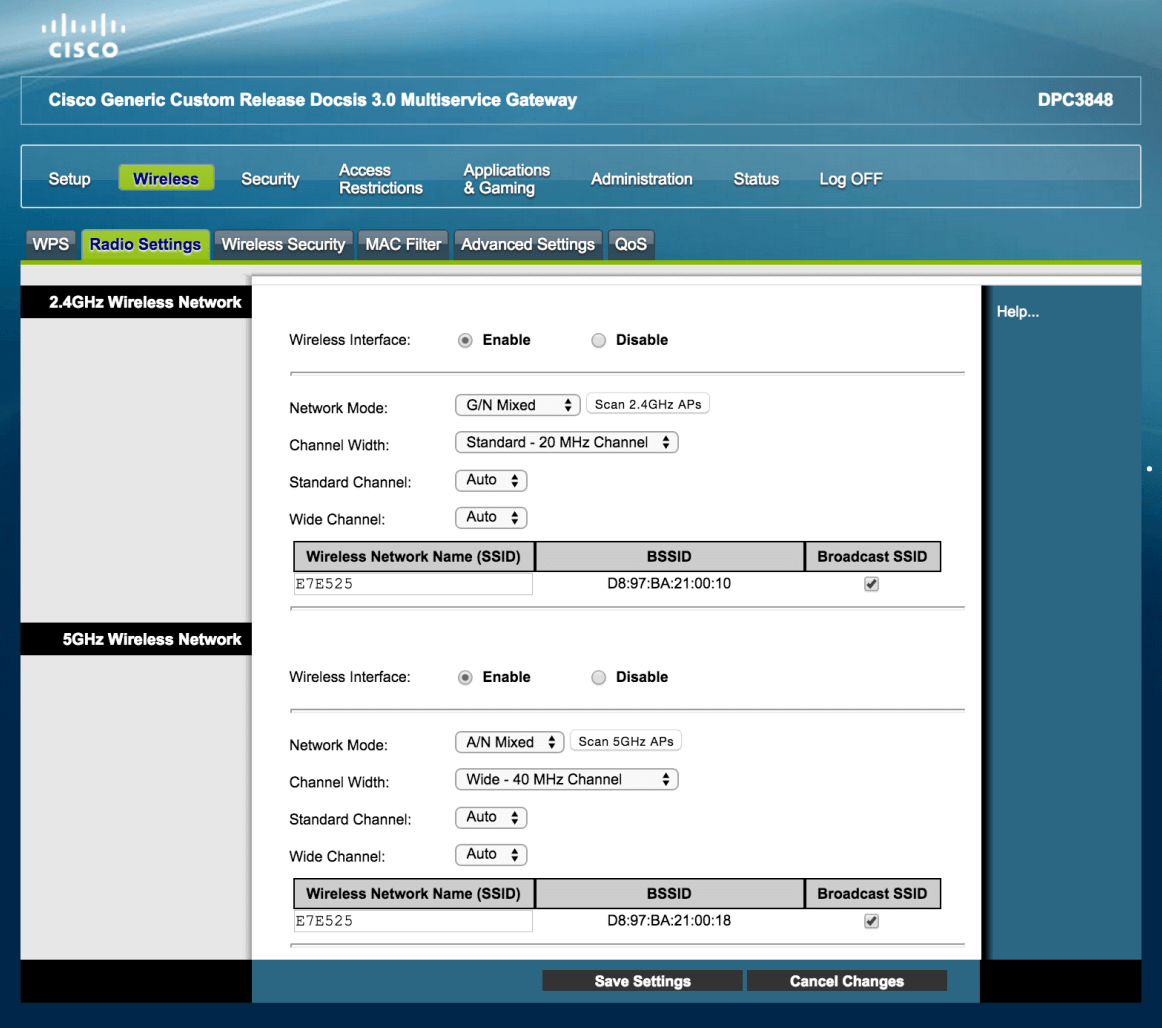 - Select Wireless > Radio Settings.