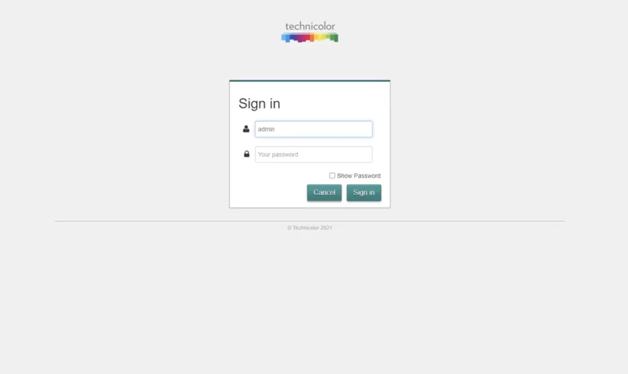 - Enter the Username: admin and Password and click Sign in.