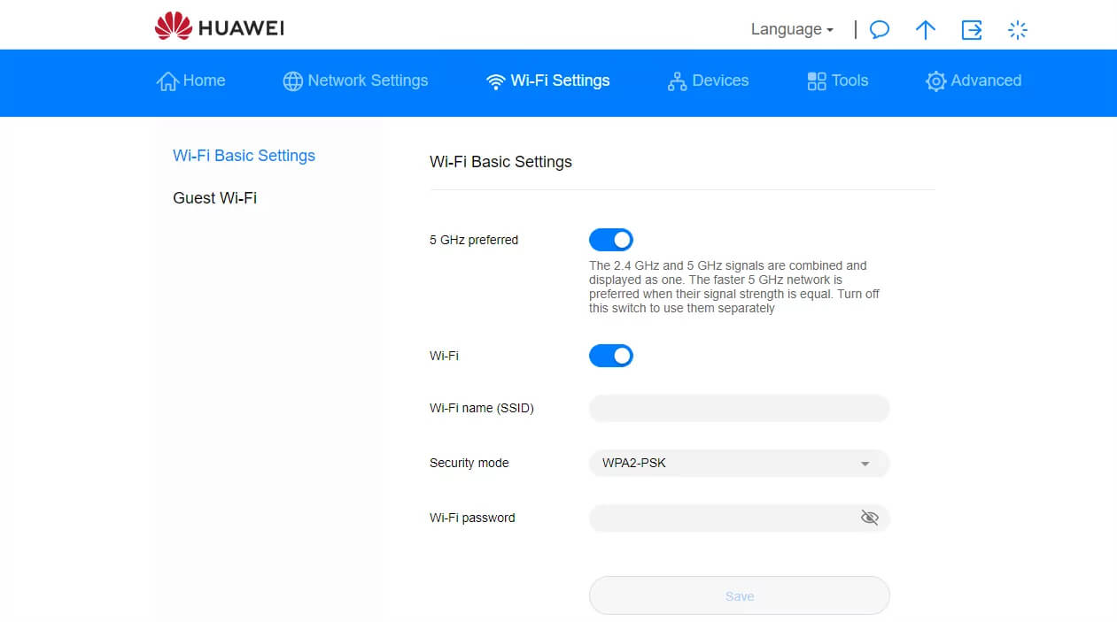 - Open a browser and type http://192.168.8.1 in the address bar.