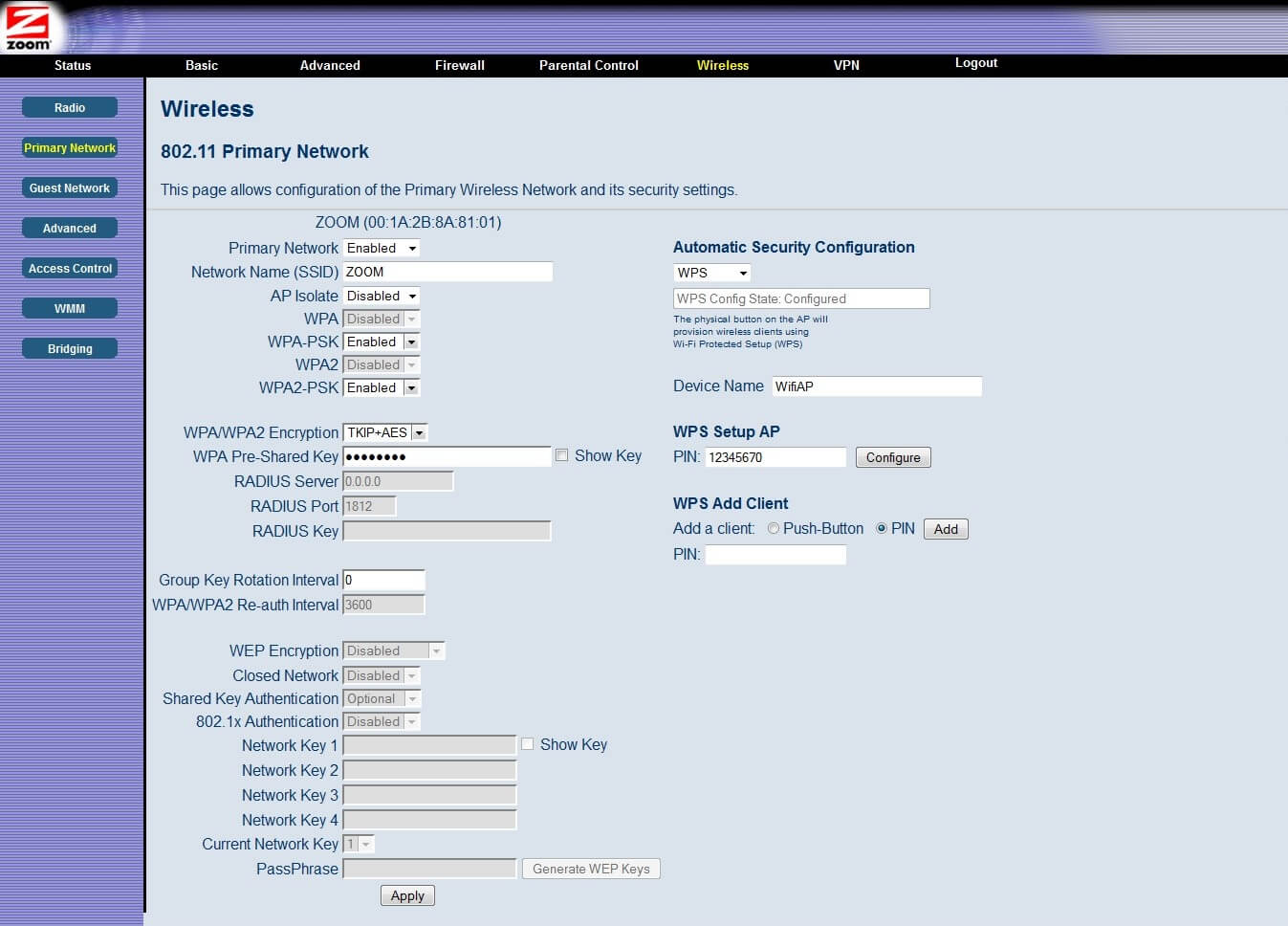- Enter the Wi-Fi Password in the WPA Pre-Shared Key field.