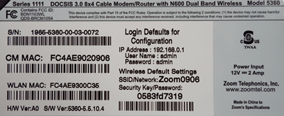 Note: The IP address, Username, and Password are printed on a sticker on the back of the router.